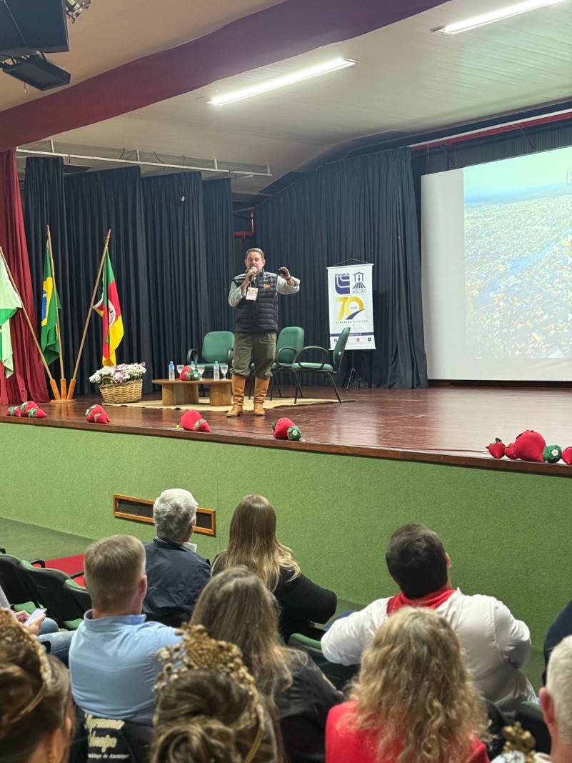O secretário de Turismo do Rio Grande do Sul, Ronaldo Santini, participou, na manhã desta quarta-feira (10/9), do Seminário do Turismo Rural, Sustentabilidade e Novas Possibilidades, realizado em Bom Princípio, dentro da programação da 21ª Festa Nacional do Moranguinho. Em sua palestra, Santini abordou o tema “Turismo como vetor do desenvolvimento econômico”, reforçando o papel estratégico do setor para a geração de emprego e renda no estado.